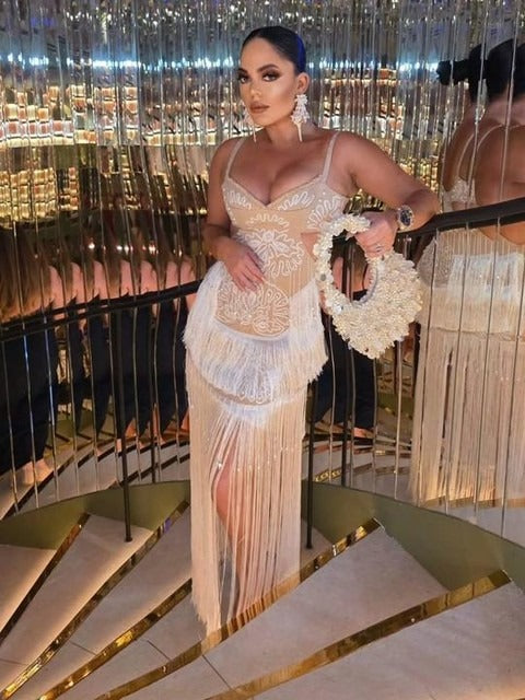 Elegant And Sparkling Sequined Black Stretch Cotton Party Maxi Dress