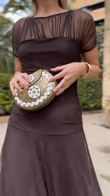 Brown Sheer Mesh Short - Sleeve Maxi Dress