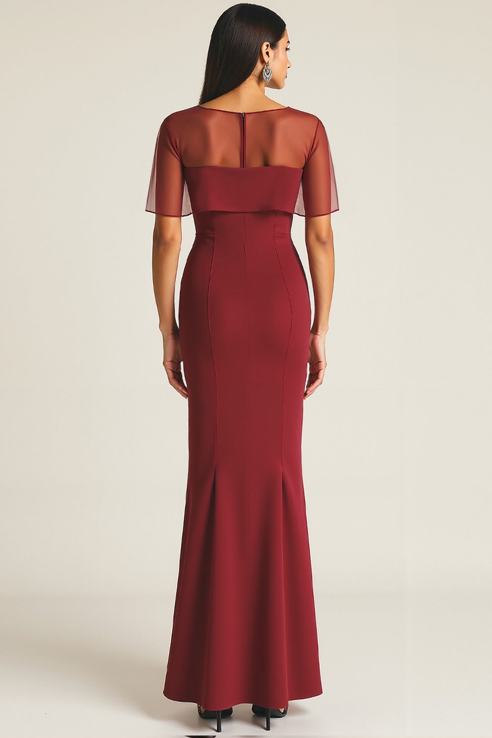 Evening Formal Dress Burgundy Sheath Strapless Cape Maxi Dress