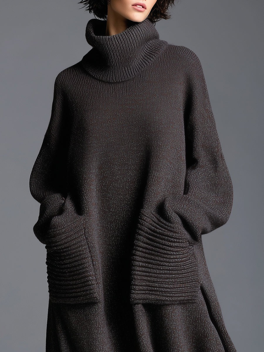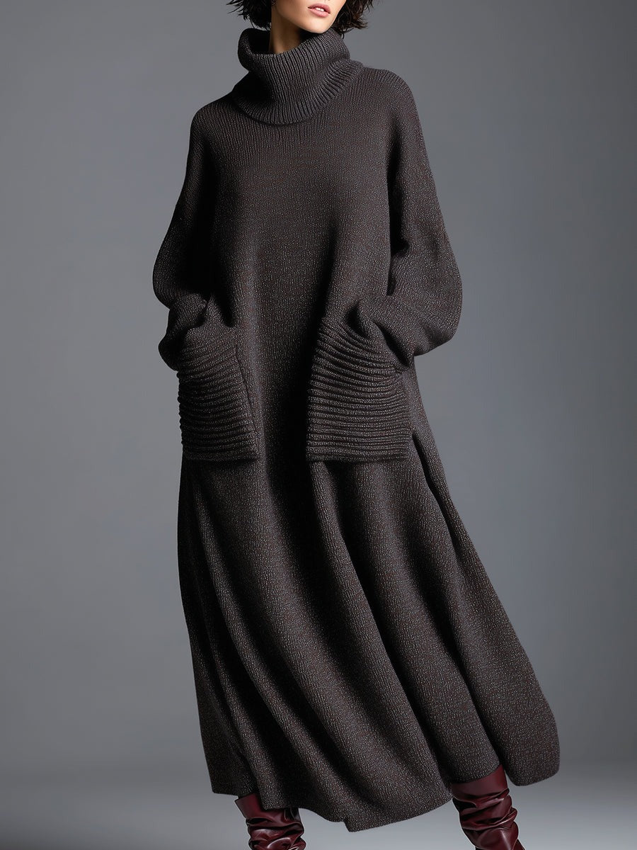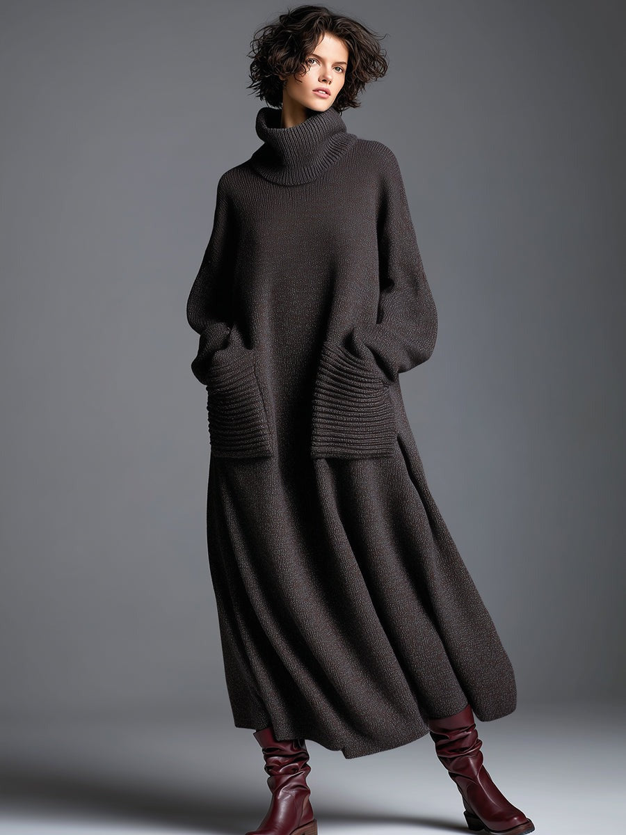 High-end Fashionable Loose Neckline Brown Knitted Maxi Dress