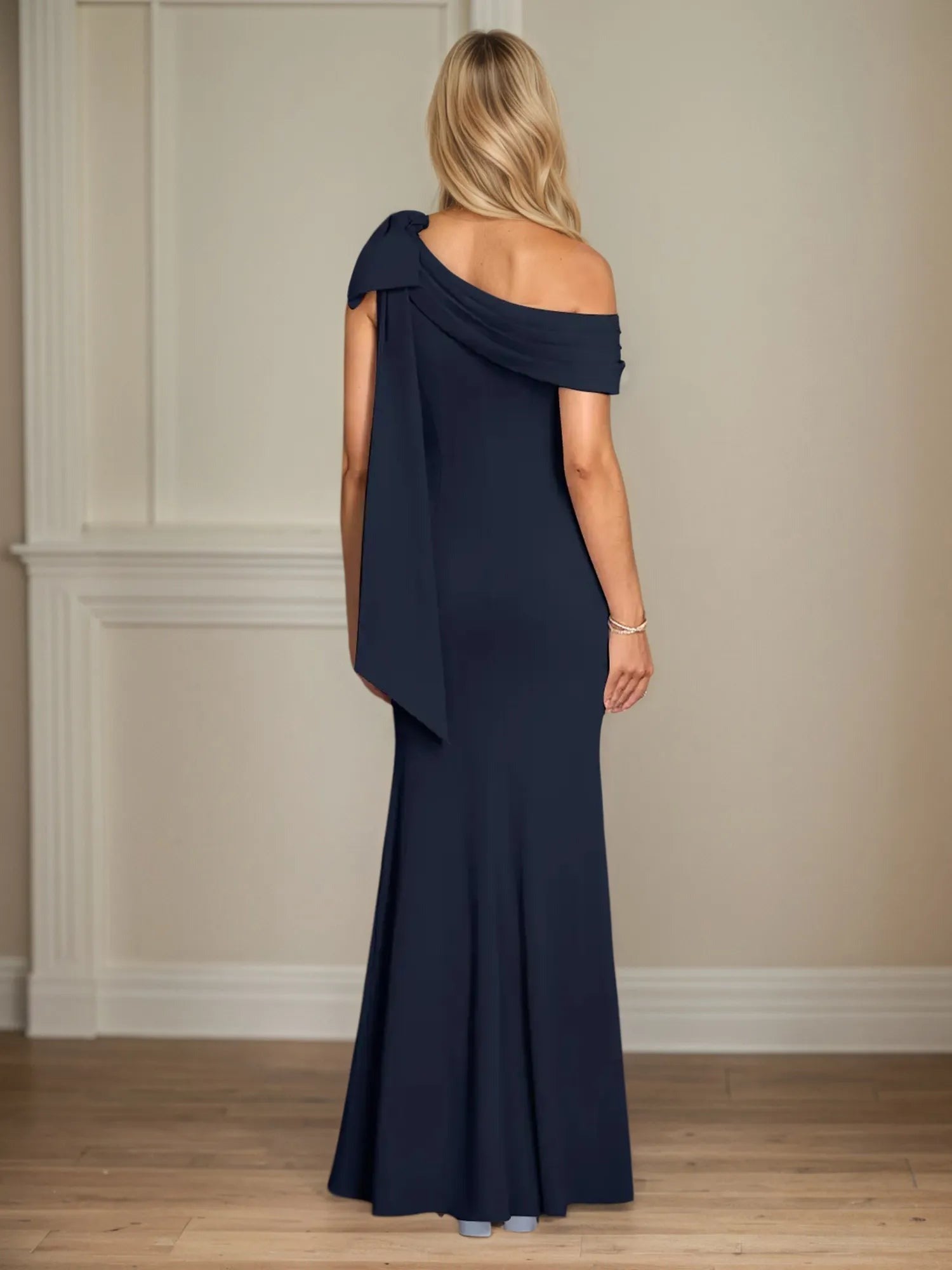 Features: One-shoulder neckline with oversized bow detail, bodycon silhouette, floor-length mermaid skirtOccasion: Formal events, evening galas, weddings